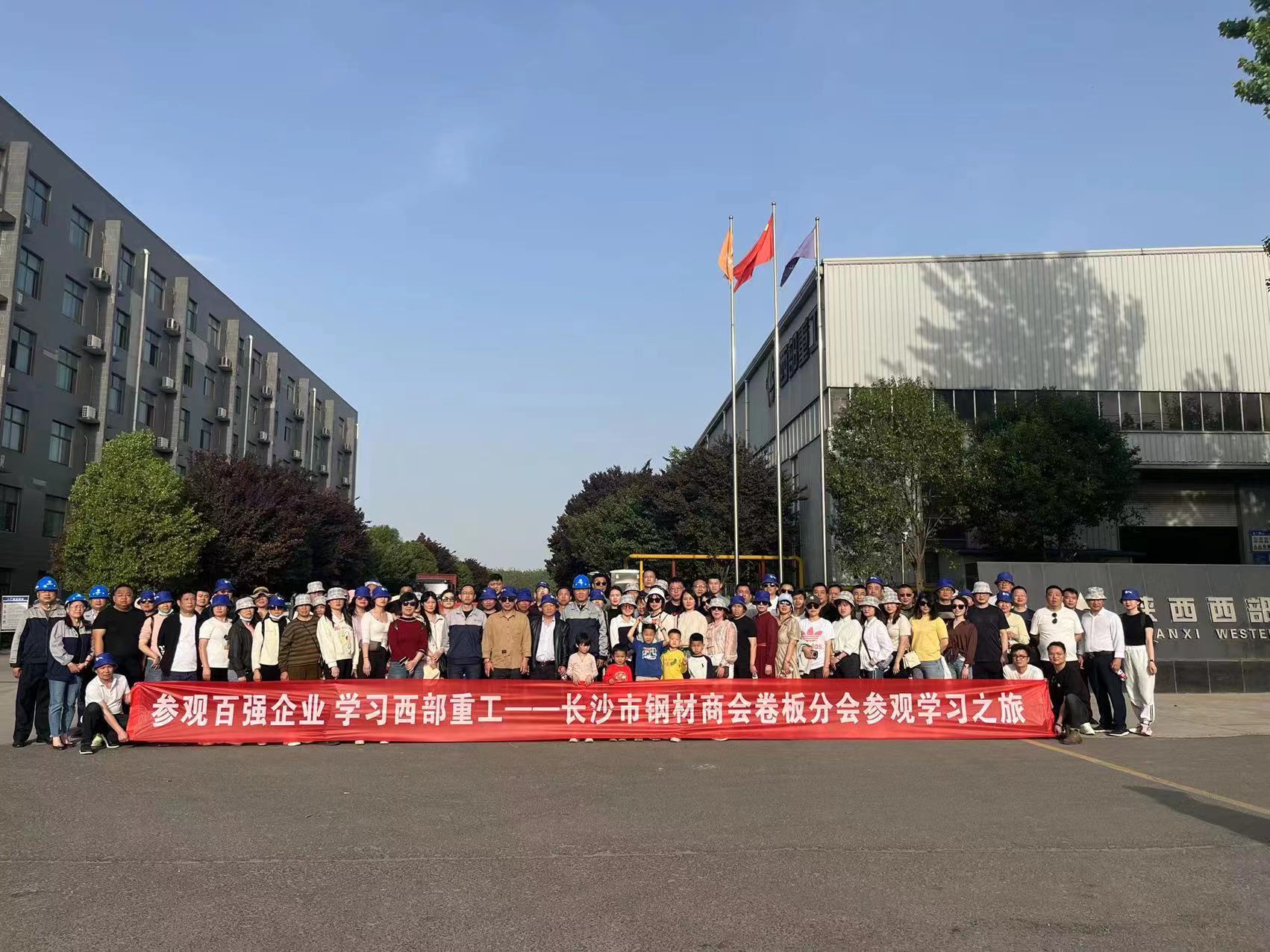 【概要描述】2023年4月15日下午,长沙市钢材商会卷板分会一行118人,在湖南中钢智能制造股份有限公司总经办总经理助理岳东风的带领下莅临陕西西部重工有限公司进行参观。