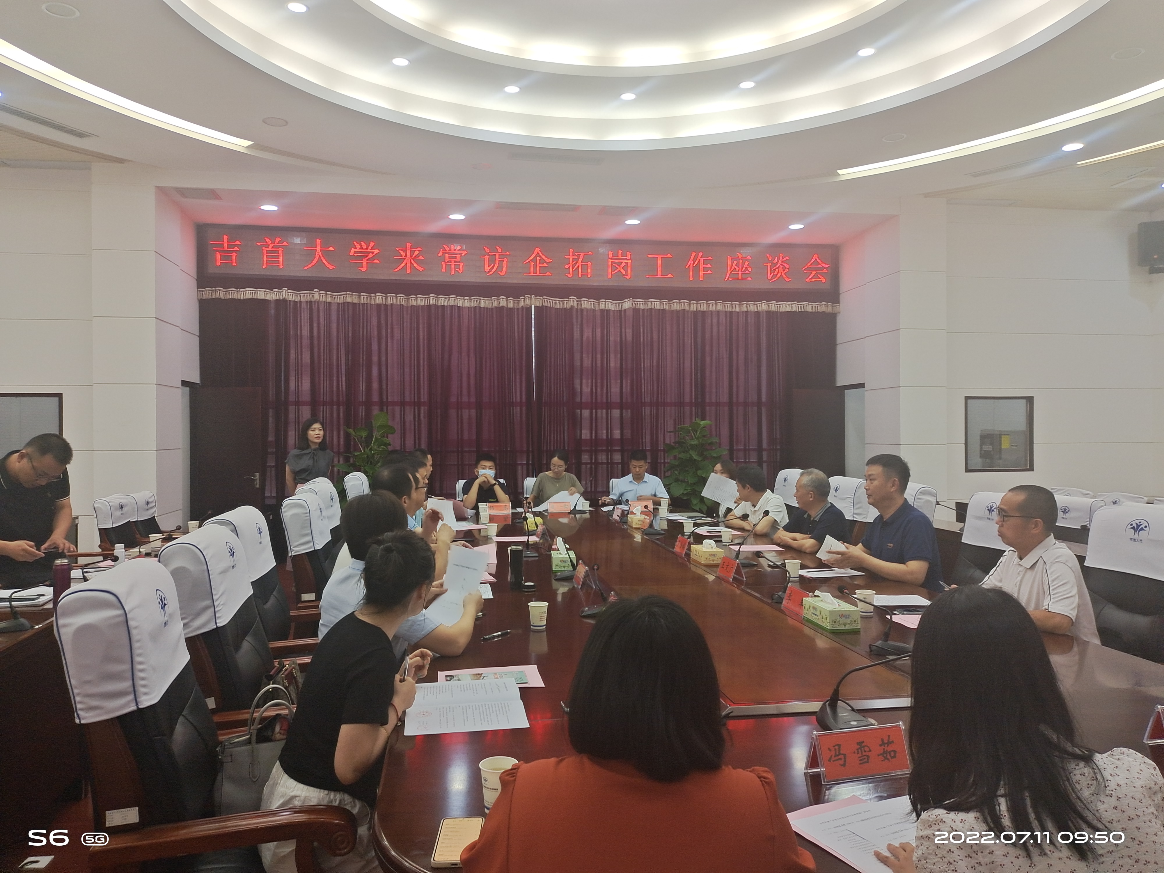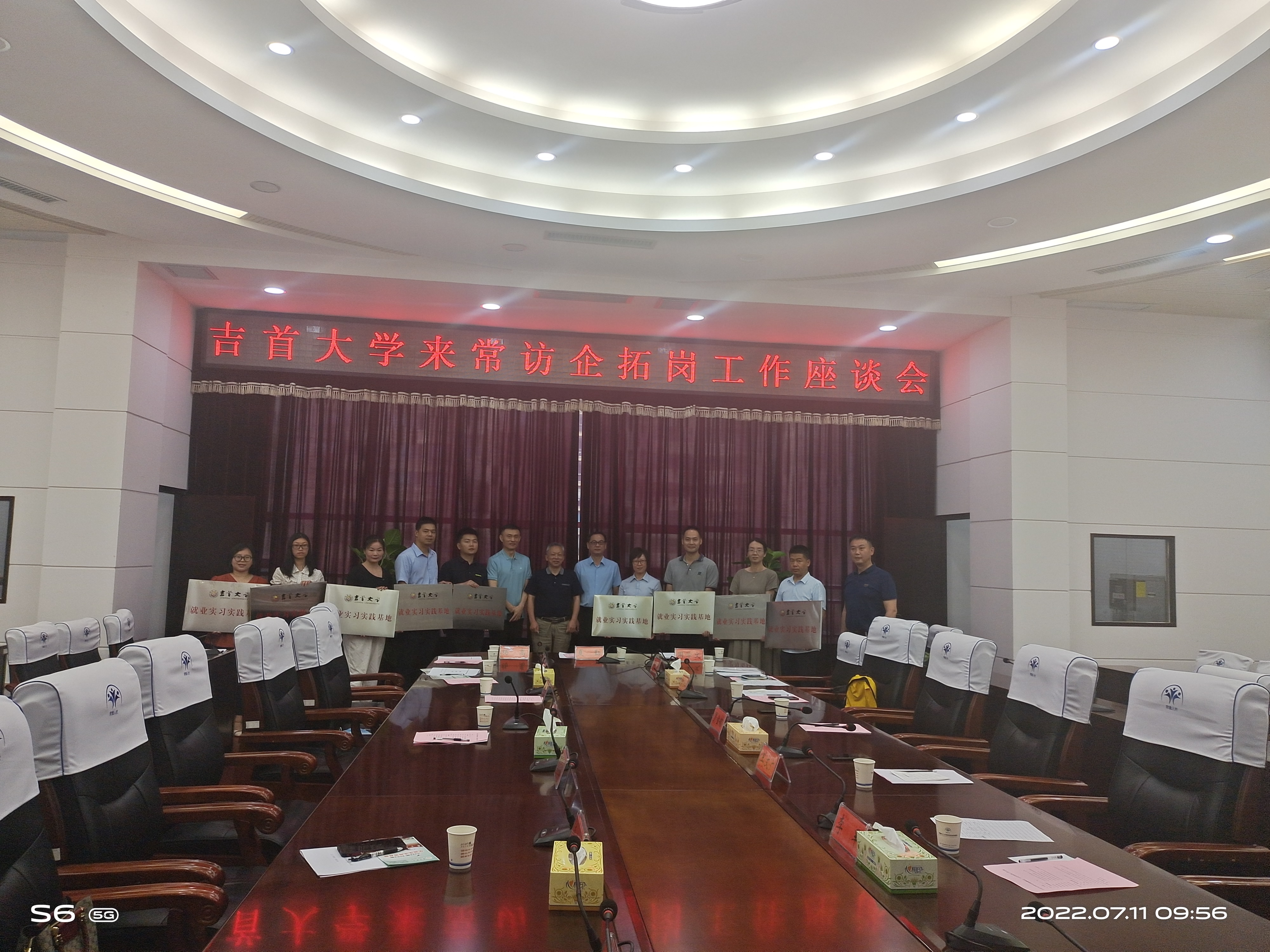 2022年7月11日上午在常德市人社局801会议室,由常德市人社局党组成员、副局长龙伟同志主持,武陵机械等9家企业与吉首大学签订合作共建《吉首大学就业实习实践基地协议书》。