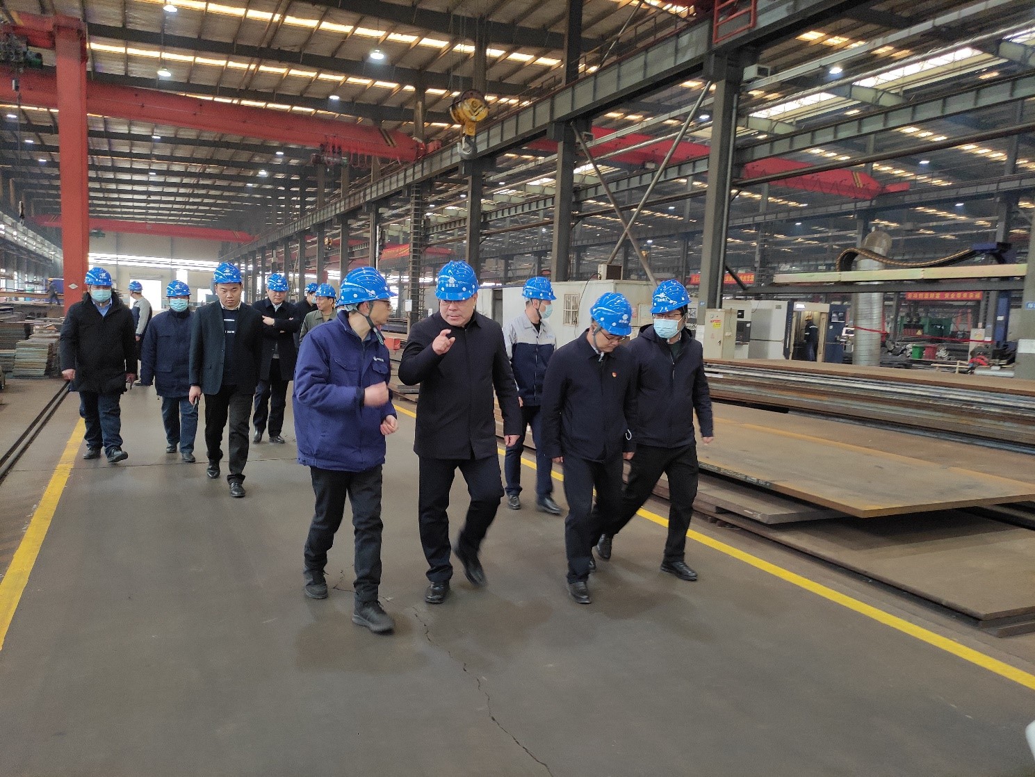 2023年2月2日上午,渭南市高新区主任蔡军、副主任白雪亮及高新区管委会相关部门领导一行莅临陕西西部重工有限公司进行调研。公司副总经理丁嘉奕、杨朋涛、综合部陈广利、制造部谭义清等热情接待来访领导。