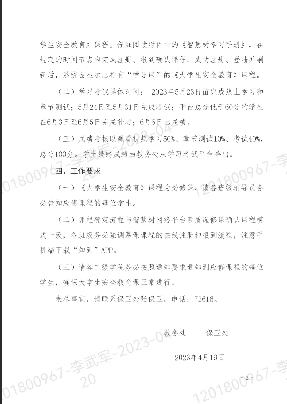 关于组织2022急学生参加《大学生安全教育》课程线上学习和考试的通知