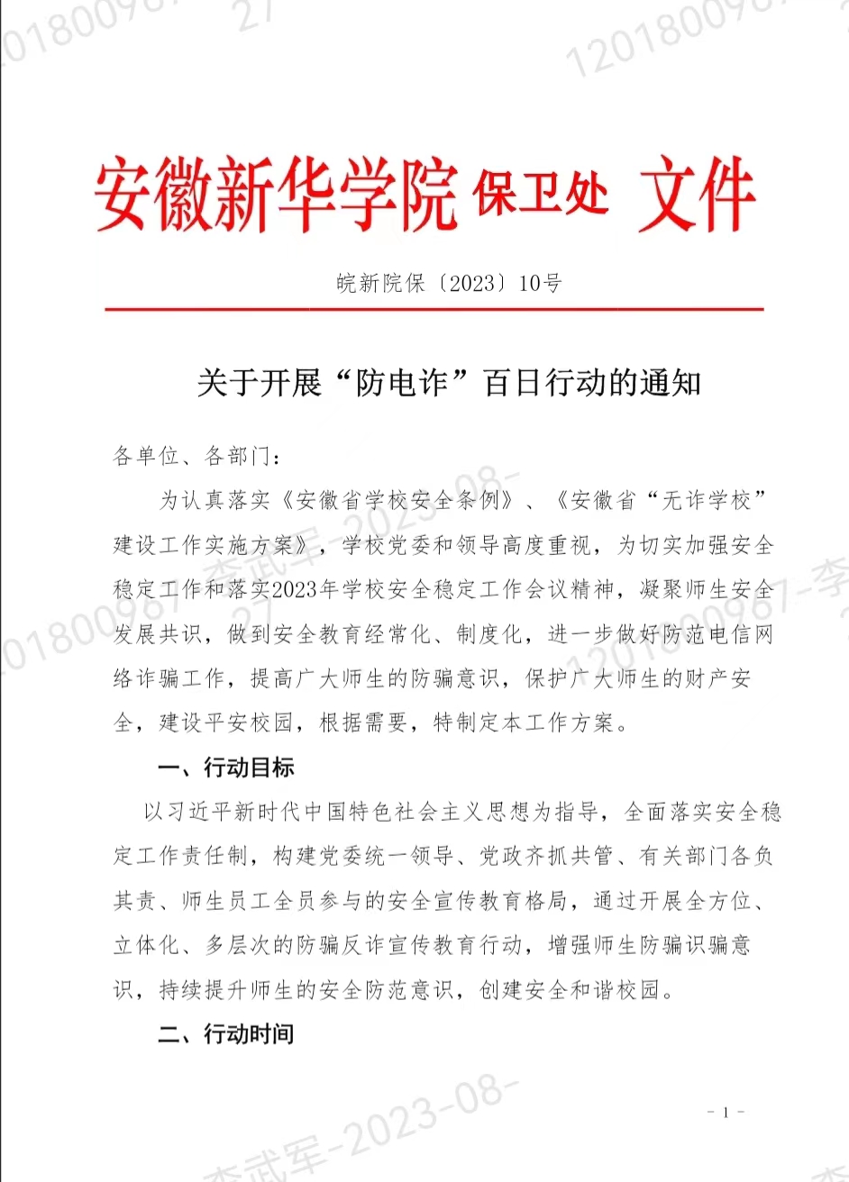 关于开展“防电诈”百日行动的通知