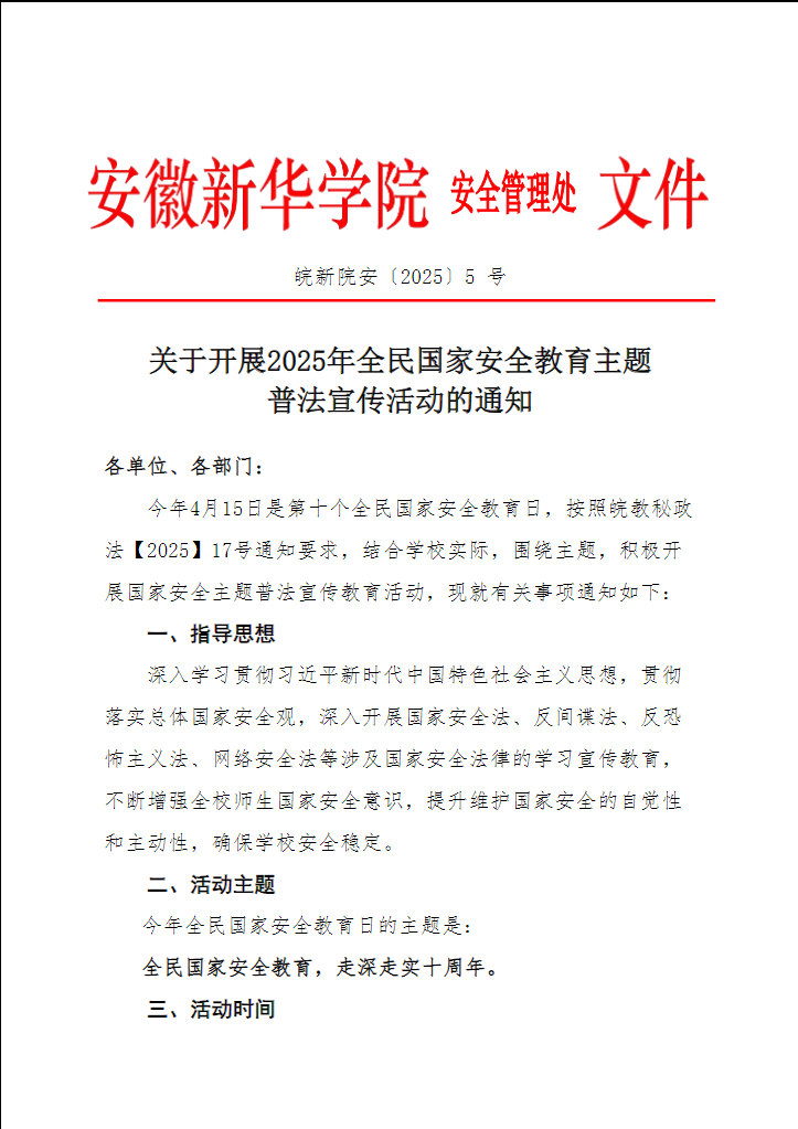 皖新院安〔2025〕5 号 关于开展2025年全民国家安全教育主题普法宣传活动的通知