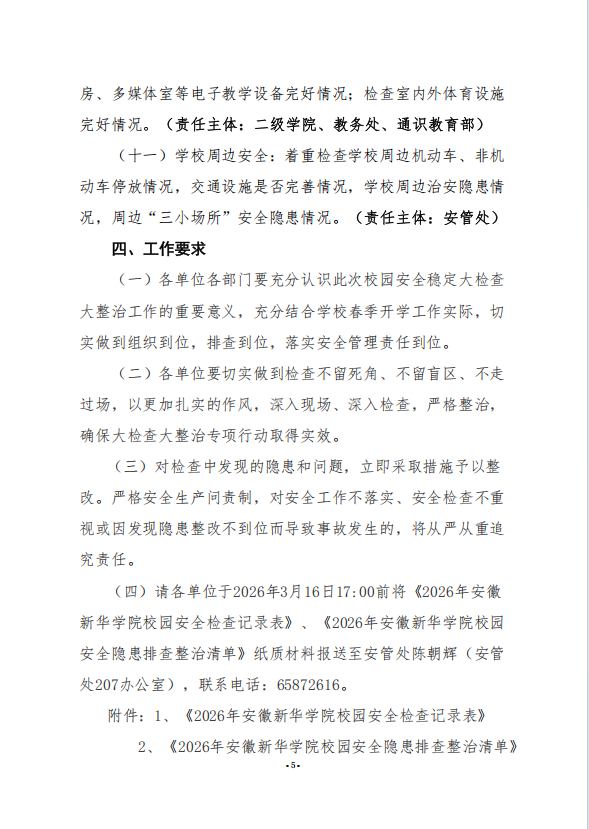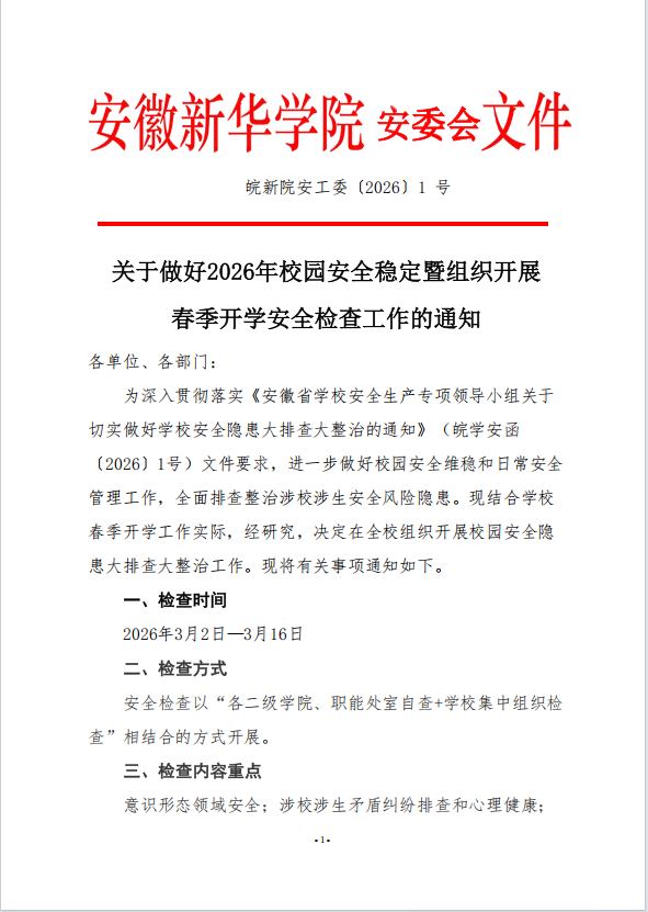 关于做好2026年校园安全稳定暨组织开展春季开学安全检查工作的通知