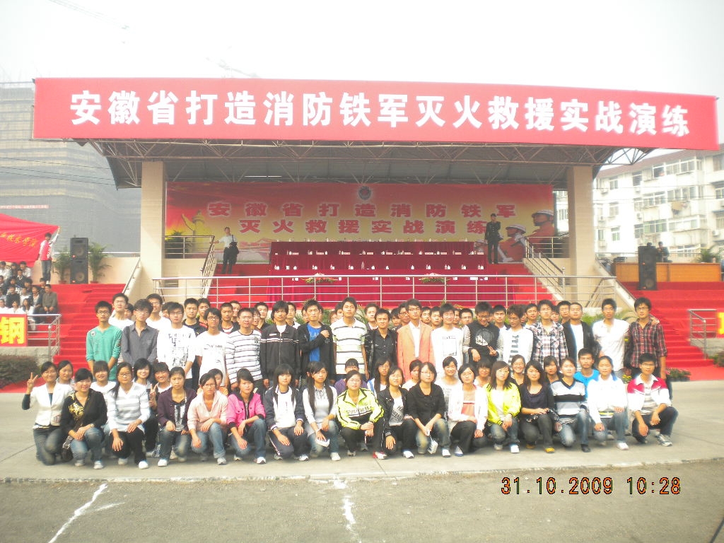 上午8:00,保卫处组织100余名学生前往合肥市消防特勤基地现场观摩。演练于上午9:30正式开始。此次演练有四个方面的内容。一是消防车辆分列式表演。展示了我省先进的消防装备,也充分体现了我国消防工作的快速发展。二是消防战士哑铃体能操、综合体能、技能操等表演。展示了消防官兵过硬的军事业务素质和英勇作战能力。三是地震、中毒、山地、水井、矿井等自然灾害被困人员的紧急救援。消防战士利用先进的消防工具准确、迅速的展开救援。四是交通事故、企业化工装置爆炸、高层住宅火灾等灭火救援。随着轰轰的爆炸声响起,火光冲天,浓烟滚滚,勇敢的消防官兵驾驶着消防铁甲,个个精神抖擞、士气高昂,面对熊熊的火焰,他们动作熟练、敏捷,按照总指挥命令,拿起灭火武器与火魔进行斗争。各演练项目衔接紧密,扣人心弦,一个小时的演练精彩纷呈、高潮迭起,在场的观众阵阵响起热烈的掌声。更深刻的体现了消防官兵“铁心向党,铁血为民,忠诚铸就铁军。铁甲尖兵,铁骨铮铮,誓当江淮卫士。”的勇敢顽强精神。