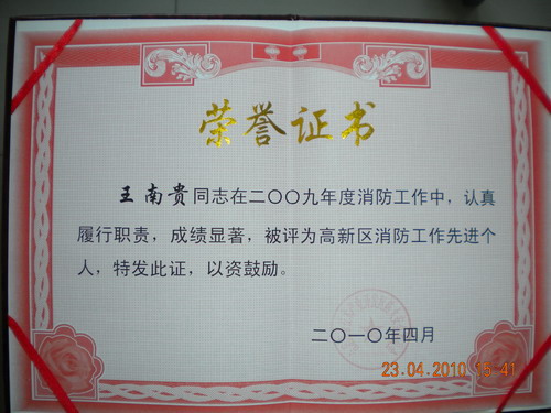 会上隆重表彰了高新区2009年度10家消防工作先进单位和28位先进个人。我院喜获“高新区2009年度消防工作先进单位”荣誉称号,保卫处王南贵同志荣获“消防工作先进个人”。
