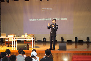 针对刚入学新生法制思想淡薄,防诈意识不强这个情况,杨大首先就一些基本法律常识与现场的学生进行了交流互动,他通过理论联系实际案例的方式,深入浅出,娓娓道来,他用风趣而接地气的语言为同学做了一堂生动的普法教育课。接下来,他运用发生在我们身边的案例和令人醒目的数据为大家展示电信网络诈骗给我们带来的危害,并分析了beat365官网近年来的电诈案件情况,语言幽默风趣,台上台下互动热烈,最后杨大用有奖竞答的方式,为同学带来了“肥肥小警”的礼物,让同学们更加深刻了解和掌握了防骗知识。