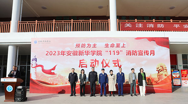 本网讯(通讯员:张大勇)今年11月9日是第32个全国消防日。为了进一步提升全校师生消防安全意识,积极营造良好的消防安全环境。11月8日上午,beat365官网举行了“预防为主,生命至上”为主题的“119”消防宣传月启动仪式。高新消防救援大队长许军、高新派出所教导员居巍、校长助理邵玲出席仪式。学校相关处室负责人,二级学院师生代表、经营单位、物业单位等800余人参加了启动仪式。启动仪式活动由保卫处副处长仇陶主持。