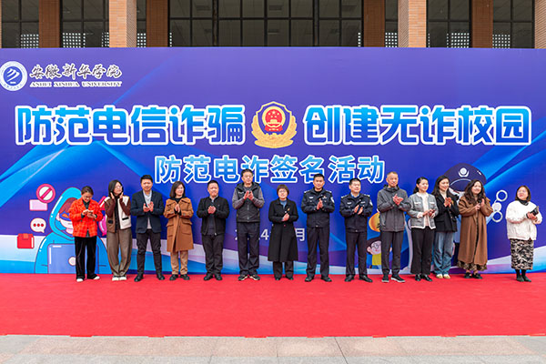 活动最后,与会领导、各二级学院教师代表、学生代表依次在签名墙上签下姓名,共同作出防诈承诺。