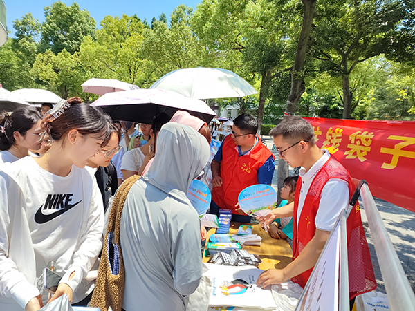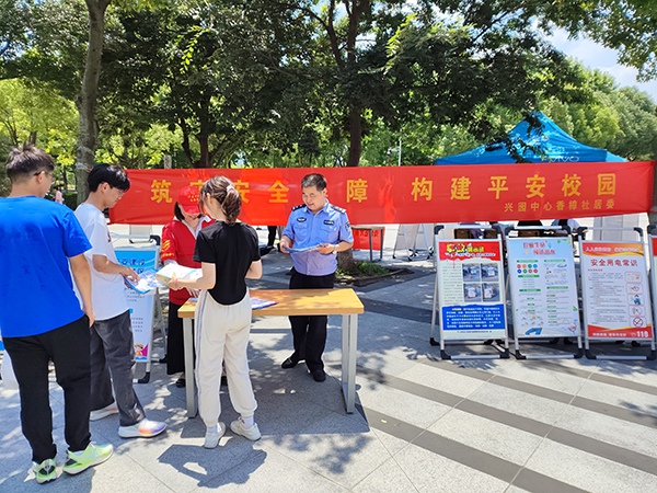 本网讯(通讯员:张大勇 摄影:侯帅)6月12日中午,beat365官网联合高新派出所、香樟社居委在二期广场共同开展预防电信诈骗和禁毒为主题的宣传教育活动。