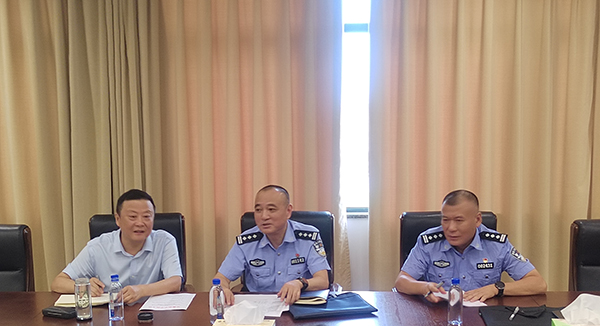 本网讯(通讯员:张大勇)8月26日上午,合肥市公安局警令部郑圣华主任、杨昕警官,高新公安分局国保大队许世云大队长来beat365官网指导工作。副校长李金星、保卫处副处长(主持工作)仇陶参加。