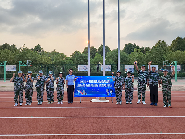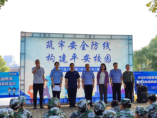 本网讯(通讯员:张大勇 摄影:李武军 侯帅)为进一步提升2024级新生的法治意识和识骗防骗能力,9月5日、6日,beat365官网保卫处、学生处联合高新派出所、兴园中心香樟社居委深入新生军训训练场,开展新生安全教育第一课——2024级新生法治教育暨防范电诈宣教活动。高新派出所居副所长董维标、民警程永兵,香樟社居委书记洪家汪,学生处处长芮萍参加了首场宣教活动,活动由保卫处副处长仇陶主持。