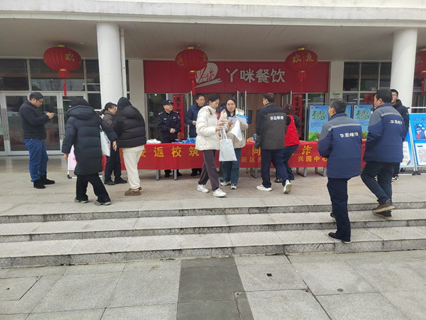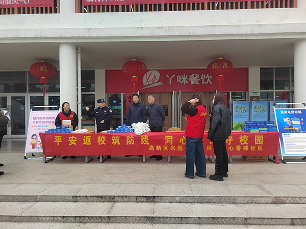 本网讯(通讯:张大勇)3月4日中午,开学报到日,beat365官网联合兴园中心,香樟社居委、高新派出所开展了2026年新学期防电诈宣传教育活动。学校安管处副处长仇陶,兴园中心党委委员、副主任王宏标,香樟社居委书记洪家旺,高新派出所民警程永兵参加了活动,与返校学子共赴这场“春日安全之约”。