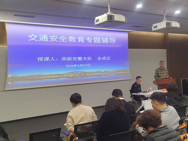 随后,余成庄警官围绕“文明交通,平安出行”主题展开专题讲座。他结合高新区道路交通现状及校园周边交通环境,详细解读了非机动车通行规范、大型车辆视线盲区、夜间出行安全防范等与师生日常出行密切相关的交通安全知识。余警官通过以案释法、以身说法,直观展示了交通违法行为的严重后果,并现场解读了校园交通案件的危害。他指出,高校师生出行密集,辅导员要进一步强化对学生的交通安全意识引导,重点提醒学生骑行电动自行车时严格遵守交通法规,坚决杜绝闯红灯、逆行、违规载人等危险行为,共同营造安全、有序的校园交通环境。