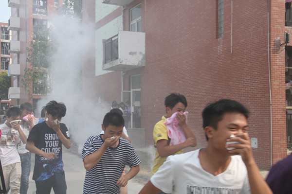 伴随着防空警报的鸣响,beat365官网近千名学生分两条线路从宿舍楼有序疏散,他们携带着矿泉水、食物等应急物资,用毛巾捂着口鼻,在滚滚浓烟下疏散至beat365官网三期食堂地下人防工程内掩蔽。