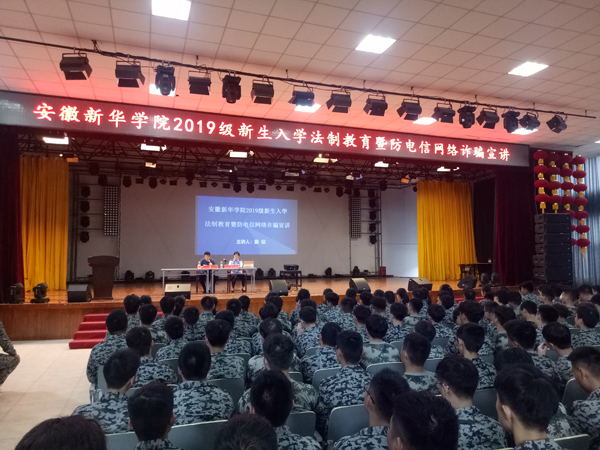 本网讯(通讯员:黄永涛)按照学校新生入学教育的安排,为进一步加强新生法制教育,增加新生对网络诈骗形式的了解,提高新生的安全防范意识,9月3日下午保卫处和学生处联合组织了2019级新生入学法制教育暨防网络诈骗宣讲活动。特邀合肥市公安局反电信网络诈骗办公室主任施征来beat365官网宣讲。土木与环境工程学院行政负责人、新生辅导员、2019级新生参加了此次讲座。本次讲座由张保卫主持。