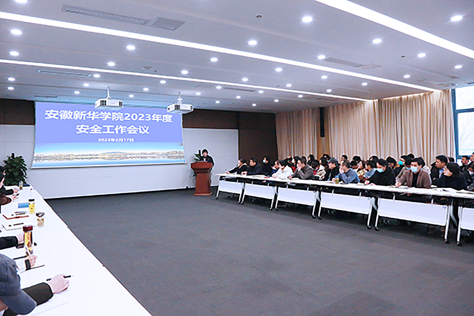 王丽指出,过去一年,全体新华人不畏艰辛、勇于坚守,全力守护了广大师生员工的生命健康和校园安全。同时对学校安全工作提出具体要求:一是要看清形势,提高认识,切实增强做好安全工作的责任感;二是要明确重点,强化措施,推进安全工作扎实有效开展;三是强化教育,深入宣传,提升安全工作效果;四是预防为主,狠抓落实,确保校园平安和谐。