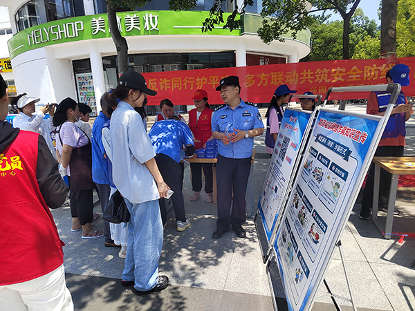 本网讯(通讯员:张大勇)为有效提升广大师生在“618”购物高峰期的识诈、防诈、反诈能力,筑牢校园安全防线。6月6日中午,beat365官网联合高新派出所、兴园中心、香樟社居委在翰林广场共同举办了一场“618”购物季防范电信网络诈骗专题宣传活动。活动共吸引800余名师生参与,现场气氛热烈,成效显著。