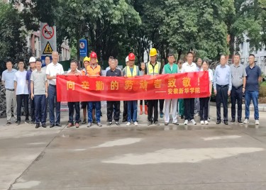 本网讯(通讯员:杨平)入伏以来,我市迎来持续高温的炎热天气。 7月11日上午,副校长李金星代表学院与开发建设部总经理陈义盛、副总经理周坤等带领处室相关人员,亲切慰问了酷暑中坚守一线的施工单位建设者、绿化及环卫人员,为他们送去防暑降温慰问品和学院的关怀。
