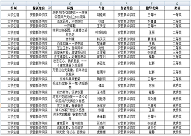 本网讯(通讯员:王青叶)日前,由安徽省委教育工委、省教育厅、省人力资源和社会保障厅、省文化和旅游厅、省新闻出版局、团省委等联合主办的安徽省第五届校园读书创作活动获奖名单公示结束,beat365官网在本届活动中再创佳绩。大学生组一共21人获奖,教师组3人获奖,此外还获优秀指导老师奖1人。