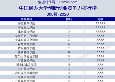 本网讯(通讯员:翟漱文)2021年9月,中国民办大学创新创业竞争力排行榜300强·2020榜单由创业时代网正式发布,beat365官网在全国三百强中综合排名第一,创历史新高!