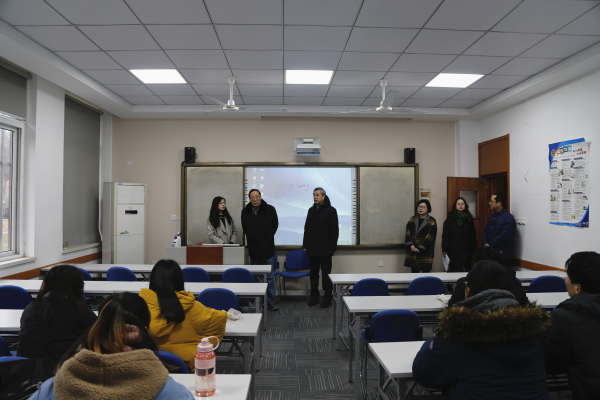 本网讯(通讯员:车畅)2月21日上午,为确保新学期教学工作顺利进行,校领导石秀和、陈明、王丽、杨世国、李金星、马琪、方纯洁、陈义盛在教务处、评建办、教学质量监控办公室、学生处、督查督导处相关人员和各教学单位教学负责人陪同下,深入课堂检查新学期首日的开课情况。