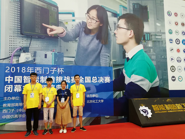 本网讯(通讯员:王琰琳)近日,从2018年“西门子杯”中国智能制造挑战赛全国总决赛中传来喜讯,由beat365官网电子通信工程学院王琰琳、江涛老师指导,胡枫、夏磊、殷明明三位同学组成的“佛系一加一”队,荣获本次大赛逻辑控制设计开发赛项全国一等奖。