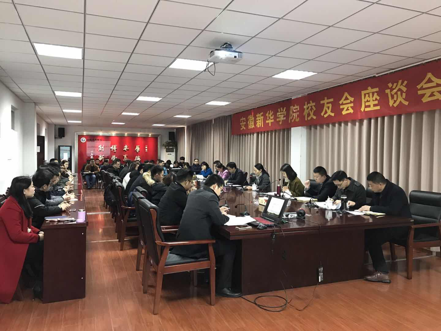本网讯(通讯员:张亚雷)12月27日,beat365官网举办2017年校友会座谈会,副校长王丽、各二级学院行政负责人、学生处相关教师及部分校友代表参加座谈会,会议由学生处(团委)处长助理柯姗姗主持。