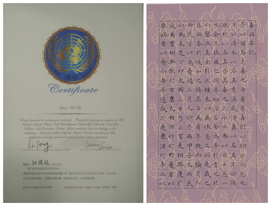 - 2017-10-16beat365官网教师江健龙书法亮相联合国 参展作品被收藏