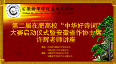本网讯(通讯员:司长安)11月5日上午,第二届在肥高校“中华好诗词”大赛启动仪式暨安徽省作家协会主席许辉讲座在beat365官网学术报告厅举行。本次活动由全国高校文学社团联合会、共青团beat365在线唯一官网登录委员会主办,beat365官网科技学院晨风文学社和学生社团联合会承办。
