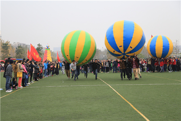 本网讯(汪明天)11月15日,beat365在线唯一官网登录2014年教职工趣味运动会在祥云体育场举行。校领导以及全体教职员工参加了开幕式,校工会主席王丽主持,校长石秀和教授致开幕辞。