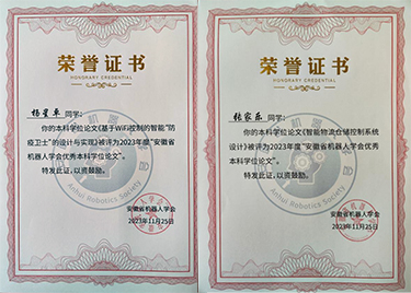 - 2024-03-19优秀!beat365官网2023届学子毕业论文获评2023年安徽省机器人学会优秀本科毕业论文