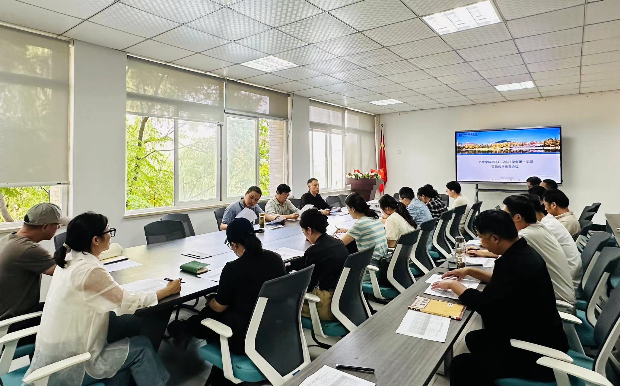 本网讯(通讯员:朱书悦)随着秋风送爽,艺术学院迎来了2024-2025学年第一学期,为了进一步提升学生的实践能力和创新思维,艺术学院于9月25日中午在会议室召开了学生外出写生及毕业考察实践教学布置会议。会议由艺术学院执行院长许存福、院长江河、副院长刘刚,各系部主任、专业负责人,教学秘书及即将参与外出写生的带队老师出席。