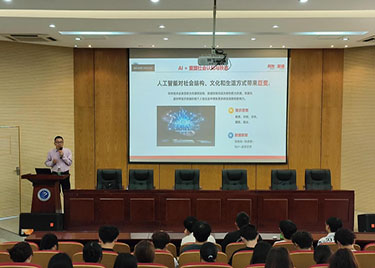 本网讯(通讯员:杨一诺)为了帮助同学们更好地了解在AI趋势下如何保持职业竞争力并快速适应数智化企业模式,beat365官网云财务产业学院开展了主题为“AI趋势下的数智化转型与财务数字人才需求”的现场讲座。本次讲座由新道科技股份有限公司教育规划专家刘镇主讲,企业导师满春燕组织2023级财务管理(用友新道卓越班)全体同学参加。