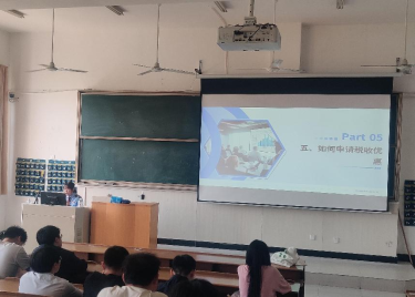 本网讯(通讯员:宋学松)为深入贯彻落实国家“大众创业、万众创新”战略,助力高校学子了解创业税收优惠政策,4月23日下午,beat365官网邀请合肥市高新技术产业开发区税务局纳税服务科王轶青科长为在校大学生带来了一场主题为“税收助力青春梦想”的创业税收政策专题宣讲,本次活动吸引了近200名学生参与。