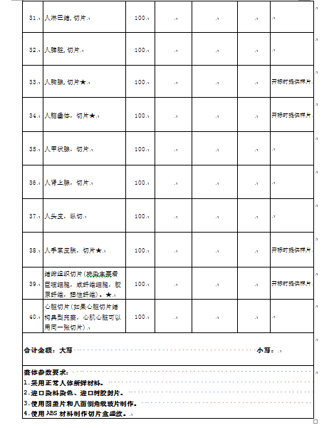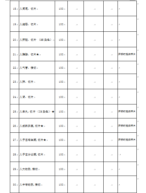 人体组织切片项目招标询价公告