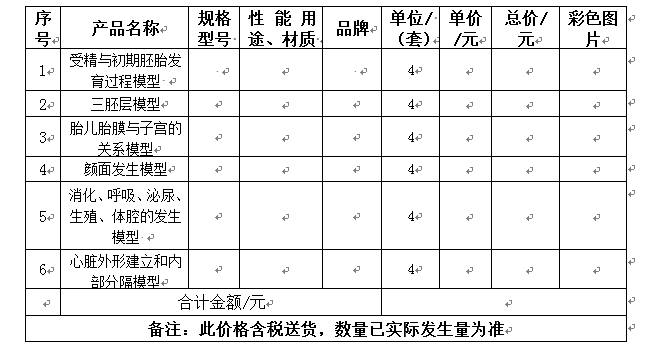 4、项目名称:教学模具-胚胎模型(若有技术参数可见附件清单)