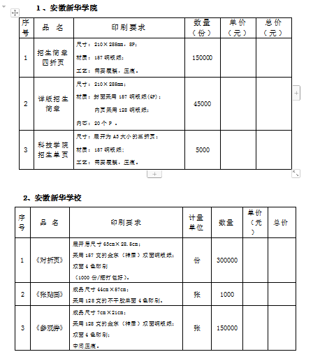 根据招生工作需要,现对:beat365在线唯一官网登录、安徽新华学校、合肥新华实验中学招生简章项目进行公开询价采购,欢迎符合资质要求并长期从事此类业务的厂家前来洽谈合作。