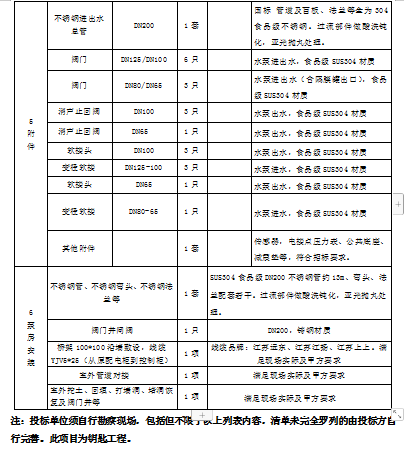 2.5.设备进出口阀门采用食品级SUS304(06Cr19Ni10)不锈钢闸阀,止回阀必须采用消声静音式止回阀,材质食品级SUS304(06Cr19Ni10)不锈钢。