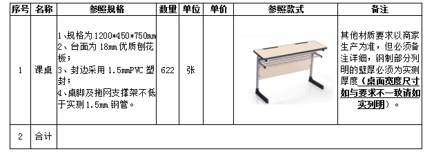 二、招标内容:教师课桌622张