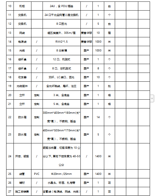 4、本次投标单位自行勘查现场,针对招标项目中所涉及到的硬件设备数量及型号由投标单位自行把控,如与清单不符,请在标书中说明规划意图;施工开挖及辅材部分数量及品种由投标单位自行测算,采用交钥匙工程,不再二次增补(另附图纸)。