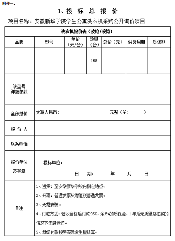 1.项目名称:学生公寓洗衣机采购项目