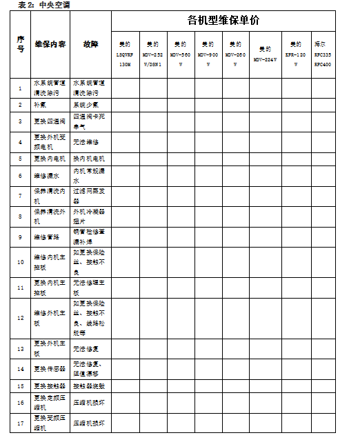 3、空调项目维保内容: