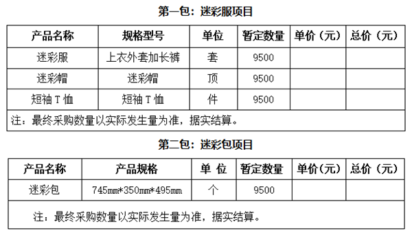 2.项目名称:2022年学生公寓物品迷彩服和迷彩包采购项目