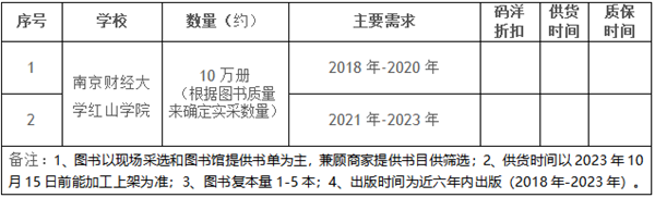 南京财经大学红山学院2023年度馆藏图书招标公告