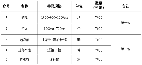 2023年学生公寓物品(蚊帐、竹席、迷彩服、迷彩T恤和迷彩帽) 招标公告