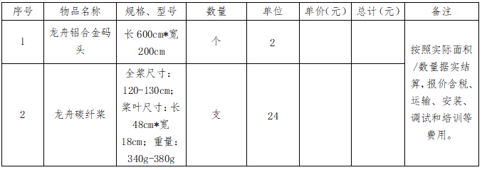 beat365在线唯一官网登录龙舟铝合金码头、龙舟碳纤桨采购项目询价公告