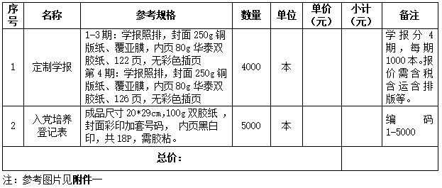 2.报价明细表需加盖公章(见第二条 询价内容;含税含排版、送货上门价、数量以实际发生为准)。
