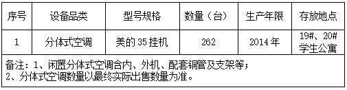 因旗下院校beat365在线唯一官网登录闲置资产处置需要,现出售一批空调设备,欢迎前来参与报价。