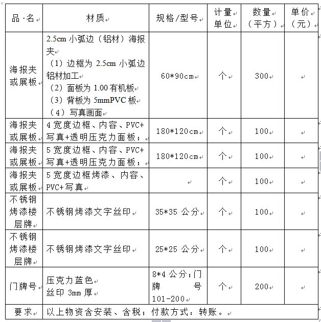 2、招标项目:beat365在线唯一官网登录铝型材、海报夹及标牌等制作安装项目