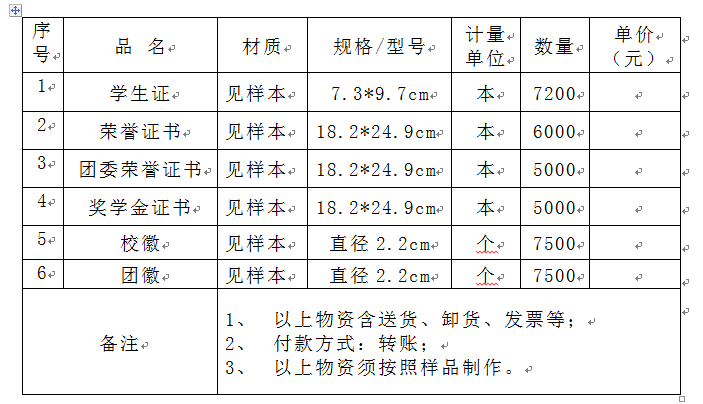 2、项目名称:beat365在线唯一官网登录学生证、荣誉证书、校徽等采购项目